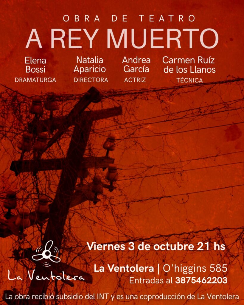 Con una estética intimista y un guion cargado de imágenes poéticas, “A Rey Muerto” propone un cruce entre recuerdos, fragmentos y silencios. La obra, además, recibió el apoyo del Instituto Nacional del Teatro y se presenta como coproducción junto a La Ventolera Casa de Arte, espacio referente en la escena independiente de la ciudad.