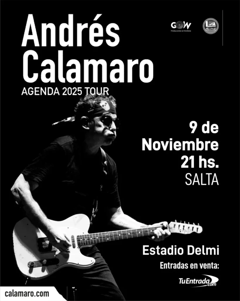 El próximo domingo 9 de noviembre, el Estadio Delmi será escenario de una de las noches más esperadas: Andrés Calamaro regresa a Salta en el marco de su gira internacional Agenda 2025 Tour.